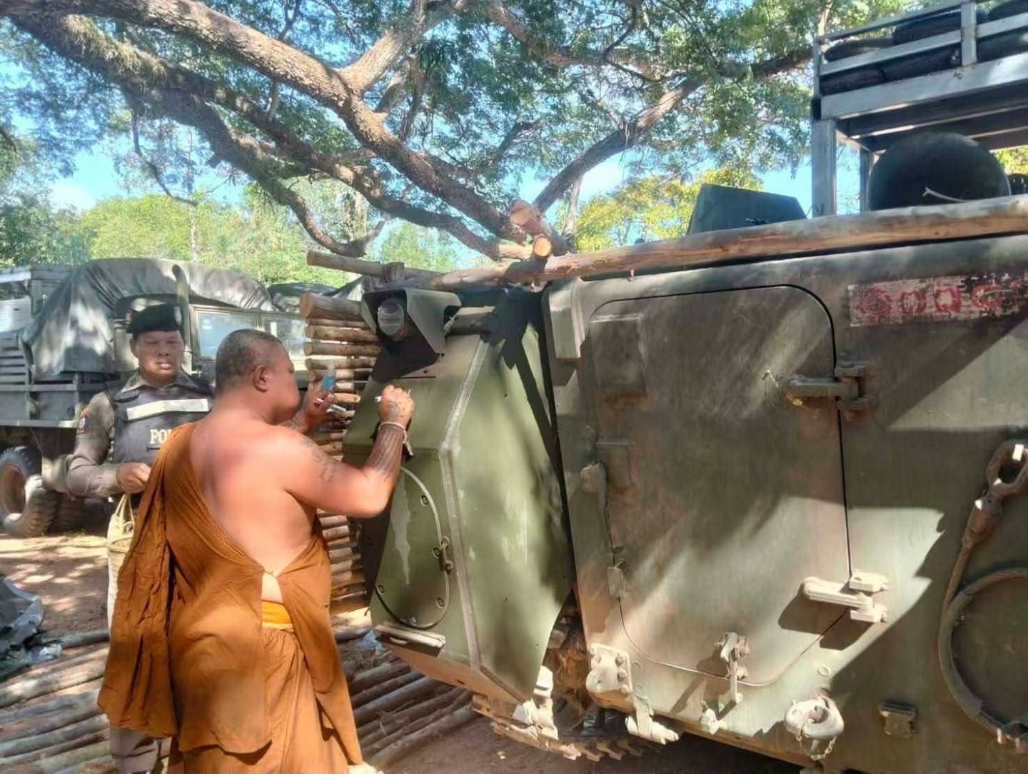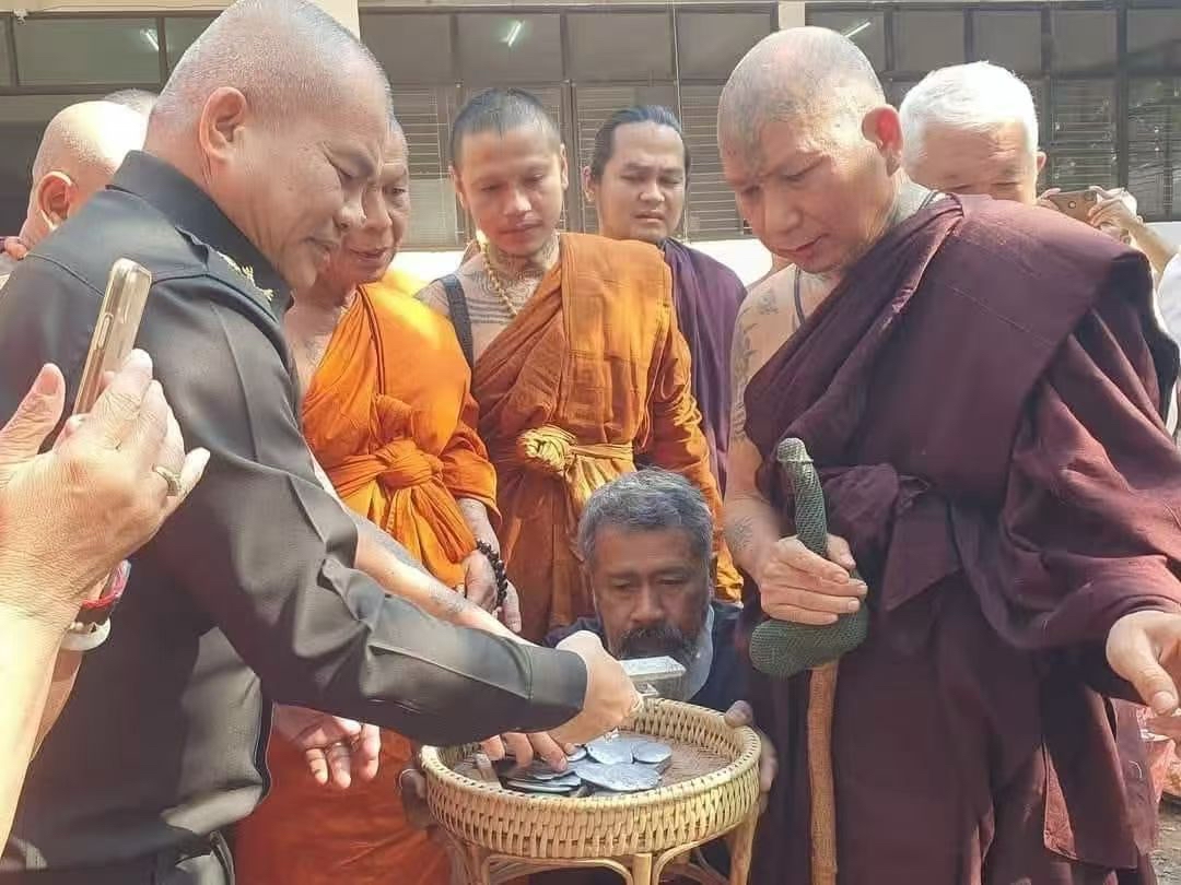 這位最新報道因爲他寫過符文的坦克中彈平安無事的神蹟而火爆全泰的聖僧,