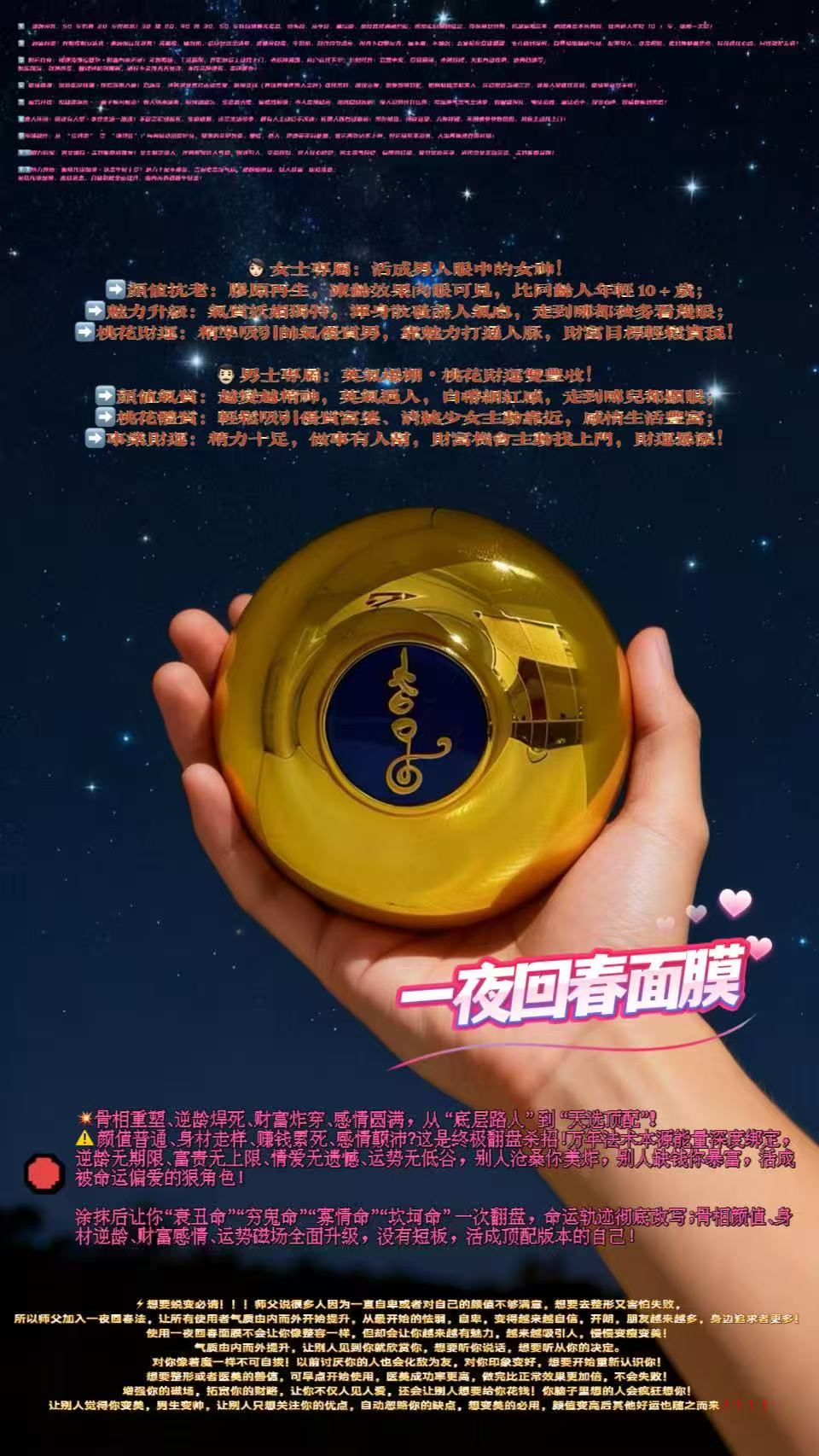 塗抹後讓你「衰敗命」「窮鬼命」「寡情命」「坎坷命」 一次翻盤,命運軌跡徹底改寫;骨相顏值、身材逆齡、財富感情、運勢磁場全面升級,沒有短板,活成頂級版本的自己!