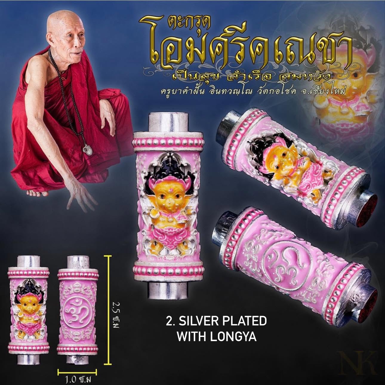 唵斯里象頭神打固 / Om Sri Ganesha Takrut甘尼薩打固 / Kru Ba Kamphan Intawanno 隆重介紹由清邁Wat Ko Chok的Kru Ba Kamphan Intawanno於佛歷 2567 年製作並加持的Om Sri Ganesha Takrut神聖護身符。此Ganesha Takrut旨在幫助其擁有者克服障礙,取得成功,並在生活中獲得繁榮,尤其是在工作和事業方面。 這枚符管上刻有印度教智慧之神、障礙消除之神像頭神伽內許的形象。人們相信,供奉這枚威力強大的護身符,將獲得神靈的庇佑,帶來生意興隆、事業成功和財源滾滾。從事藝術、文化和表演藝術領域的人尤其能從伽內什神的祝福中受益。 這款護身符非常適合想要提升事業運勢、克服挑戰、為生活注入正能量的人。人們相信它能帶來好運,尤其是在商業和藝術領域。 Om Sri Ganesha Takrut 的主要功效: 保護您免受障礙、挑戰和負面影響 💰招財納福,財源廣進 🌟蒙 Kru Ba Kamphan Intawanno 神靈庇佑,萬事如意,成功無憾 🎁這是像頭神伽內許的強大象徵,祂是障礙的消除者和好運的賜予者。 🔥非常適合企業主、藝術家和文化工作者