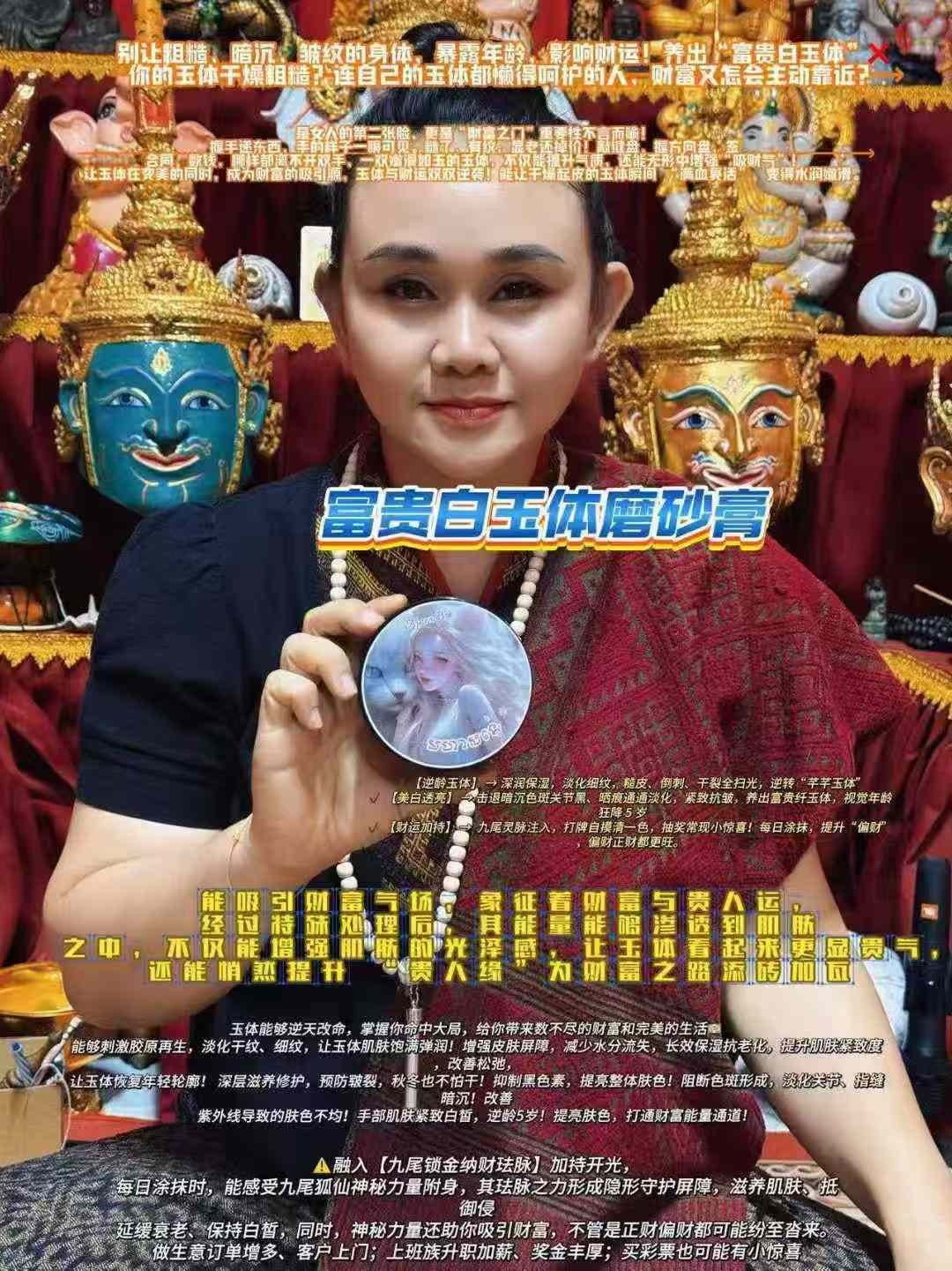 讓玉體在變美的同時,成爲財富的吸引源,玉體與財運雙雙逆襲!能讓乾燥起皮的玉體瞬間 “滿血復活”,變得水潤嫩滑。富貴白玉體磨砂膏
