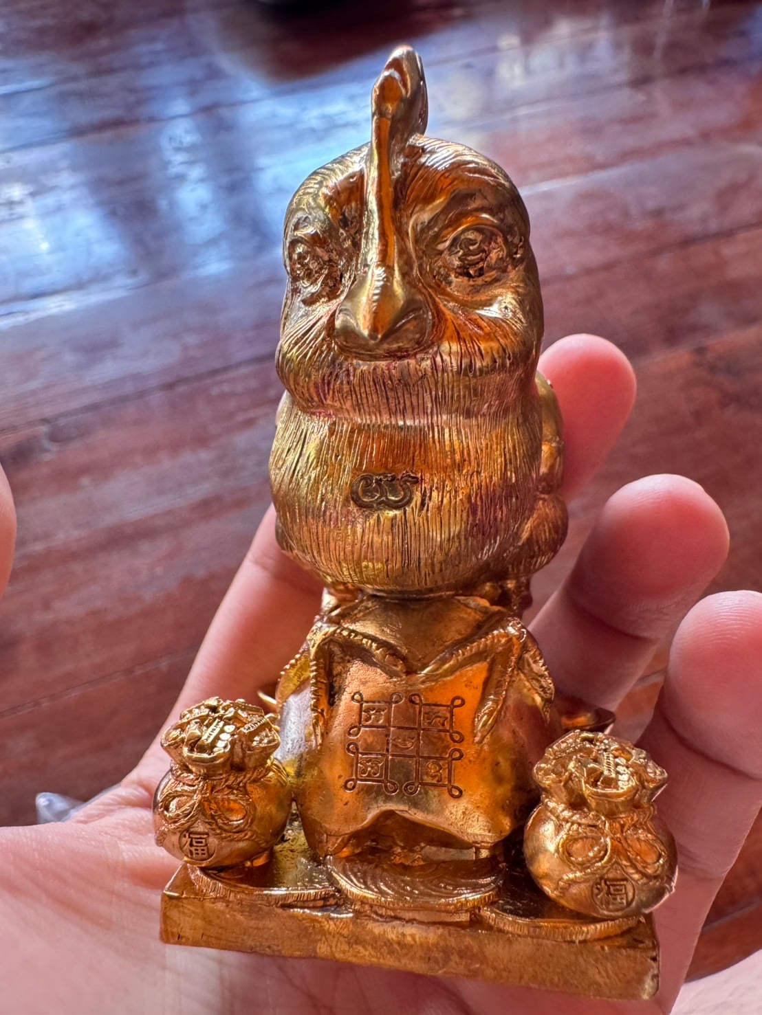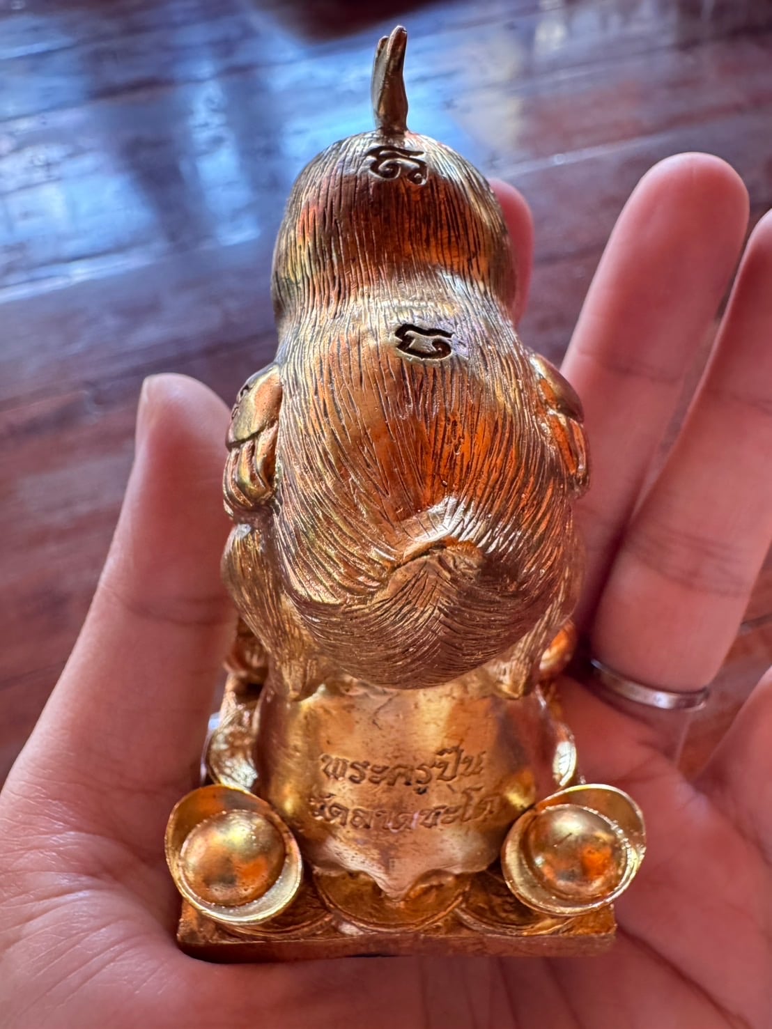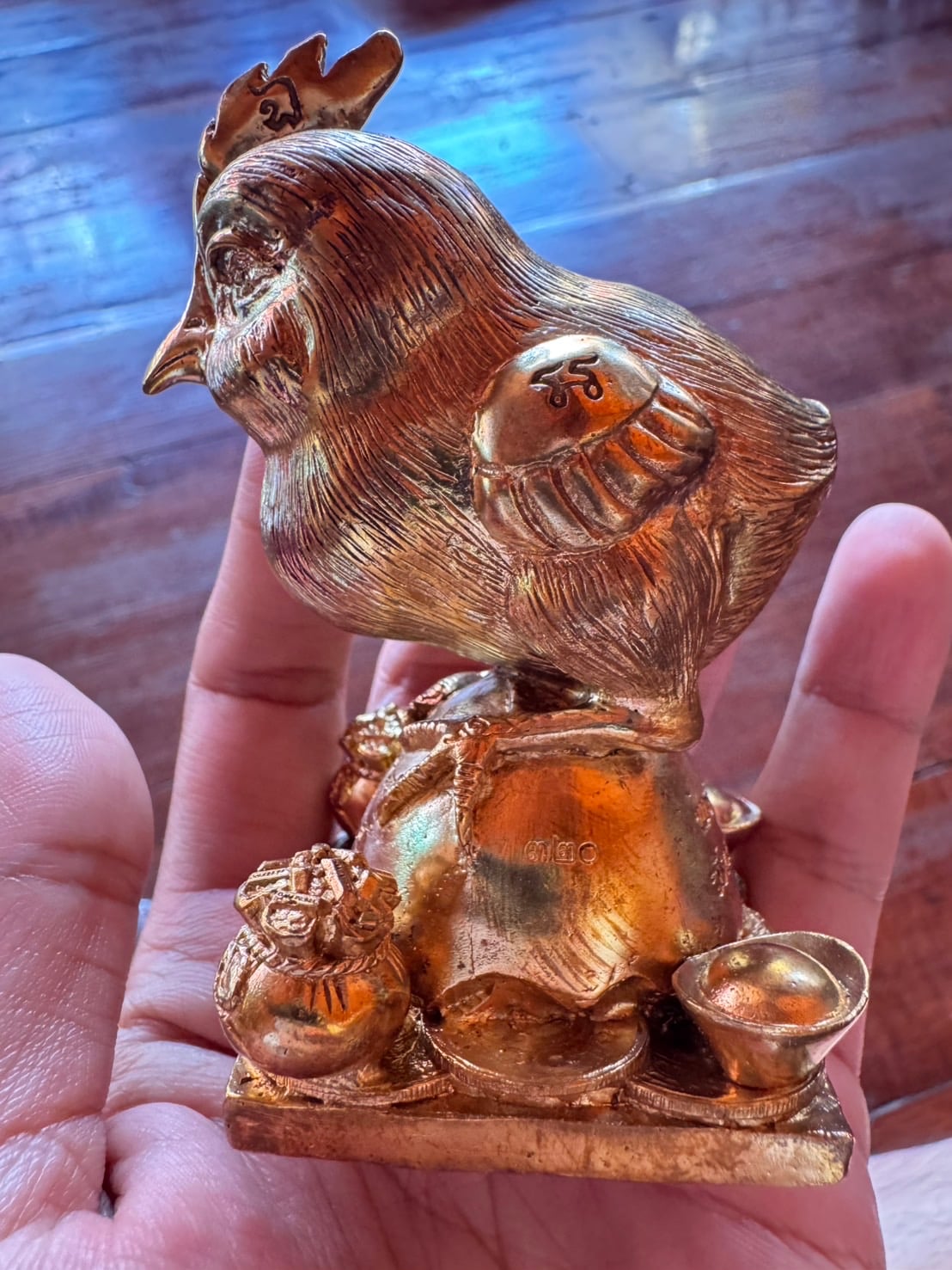 帕固伴 二期帕亞小雞王(有獨特心咒請供後提供) 講述「帕亞小雞」的故事。 此法門出自外曾祖父「瓦昂・欣」所傳下來的一本極為古老的經書。經書中詳細記載了製作帕亞小雞的方法:必須尋找「ตามโครม」的雞蛋(指已經孵化成小雞但死在蛋中的雞胚),取出後仔細清洗乾淨,接著進行處理,然後在小雞的身體上書寫符數與咒文。蛋殼也必須保留下來,同樣要刻寫符文。 完成符咒後,要誠心供奉祭拜,接著將其磨碎,混入各種藥草、聖料與特殊材料,再塑造成一隻小雞的形象,讓小雞站立在金銀財寶之上。之後再進行誦咒、召請與加持,直到聽見小雞的啼叫聲,才算完成並可正式使用。 至於帕亞小雞的寓意與功德:母雞依自然方式孵蛋,沒有乳汁可餵養小雞,也不會替小雞尋找食物,只能帶著牠們外出覓食,因此小雞必須自立自強,自己找食物,並且躲避各種危險,才能成長為成雞。 古代的師父們便取此為秘訣,認為小雞自破殼而出開始,就必須靠自己生存,勤奮覓食,並能避開多種危難,才能長大。因此,小雞被視為勤奮、善於求生、擅長避險的象徵;同時,小雞天生也被認為具有自身的魅力,因為外表可愛,讓人一見便生喜愛之心。 各位不妨依此嘗試運用,只要不違背自身的因果與業力法則,應當能見到明顯的成效。請依照隨附說明紙上的使用方法來運用,經書中正是如此記載的。