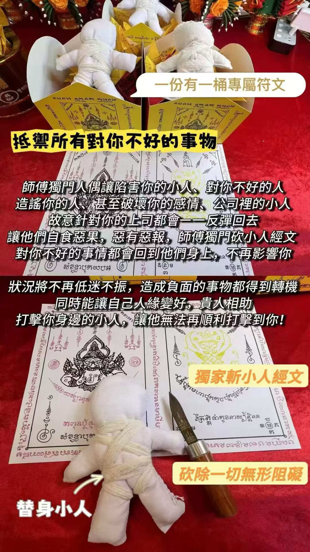 每月21日泰廟代做 托尼賈御用師傅: 阿贊能 拉壺斬人偶替身反彈,送霉给小人 拉胡有利於食小人、擋災、避險、轉運、提昇運勢、保平安、招正偏財、助事業、遇貴人! 在您生活、感情、事業處於低迷谷底時期,事事不順疲憊不堪之際,感覺周遭有小人在陷害您扯您後腿時,拉胡天神,會幫您快速調整生活磁場,讓一切正面事物來到您的身邊幫助您。 配上師傅獨門人偶讓陷害你的小人、對你不好的人、造謠你的人、甚至破壞你的感情、公司裡的小人、故意針對你的上司都會ㄧ一反彈回去,讓他們自食惡果,惡有惡報,師傅獨門砍小人經文,對你不好的事情都會回到他們自己身上,讓小人不再影響你 狀況將不再低迷不振,之前對您造成負面的事物都會得到轉機,同時能讓自己人緣變好,貴人相助,重點可以打擊在你身邊的小人!讓他無法再順利打擊到你!