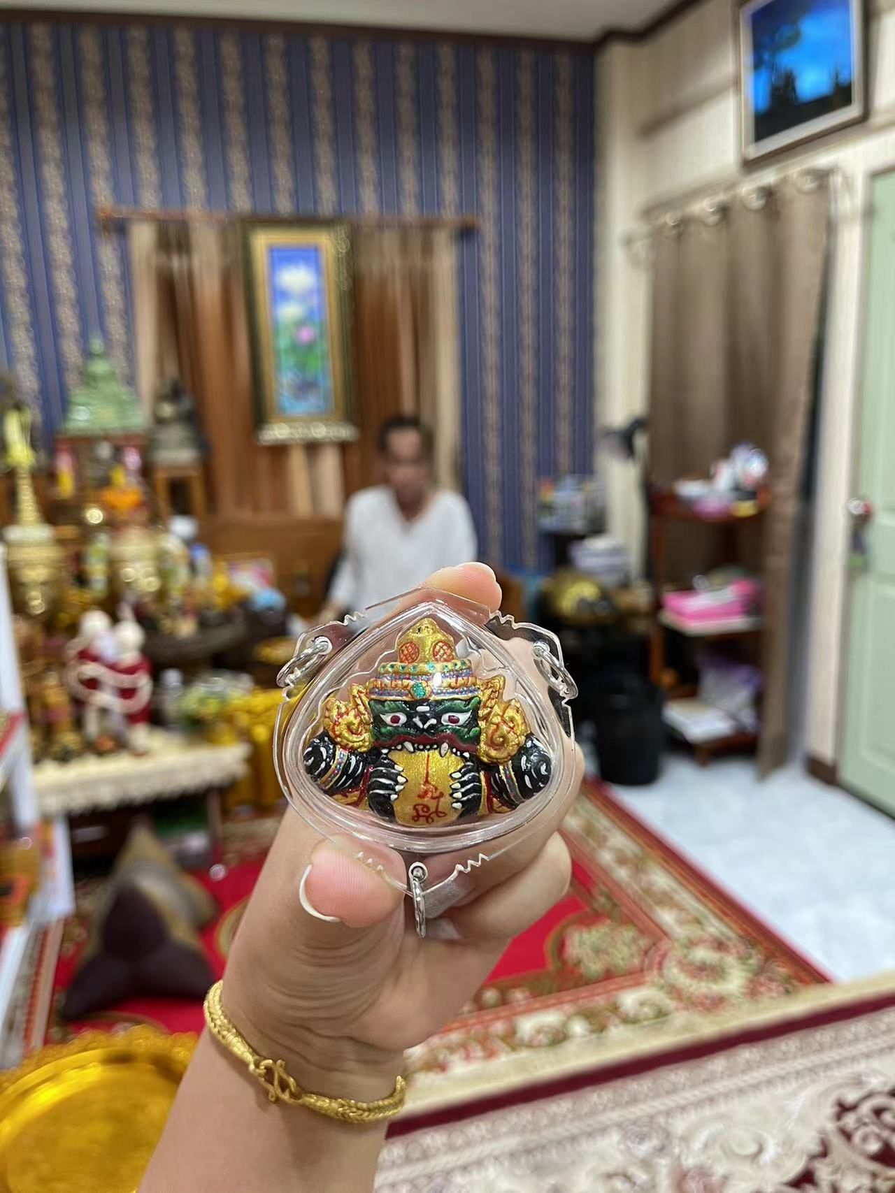 拉壺(拉胡天神)彩色手繪後面入符管 阿贊宋柴 主要功效 包括克制小人、轉運升運、招財、以及擋災避邪。它被視為「霉運的剋星」,特別有助於化解不好的運勢,避免小人背後的傷害,同時帶來貴人相助,改善工作事業運勢。 主要功效 克制小人與擋是非: 拉胡天神最著名的功效是「食小人」,能夠化解、驅除在背後中傷、嫉妒或暗算你的人,遠離是非口舌。 轉運與升運: 拉胡天神有助於轉化不良運勢,破除流年受阻的運氣,帶來好運和貴人相助,讓凡事更順利。 招財與事業: 它可以幫助生意興隆,穩定財運,並透過貴人相助帶來更多事業機會。 擋災避邪與護身: 拉胡天神能鎮定家宅風水煞氣,遮止凶煞,並抵禦邪術鬼靈的侵害。 化解官非與太歲: 對於犯太歲或有官司糾紛的人,拉胡天神有助於化解不利影響,使運勢轉為平安。 適合佩戴者 感覺到被小人針對或是非不斷的人。 運勢低迷,希望轉變現況的人。 從事銷售、公關、或需要人緣與說服力工作的人。 希望改善事業運或招財的人。 容易遇到惡意或邪術侵擾的人
