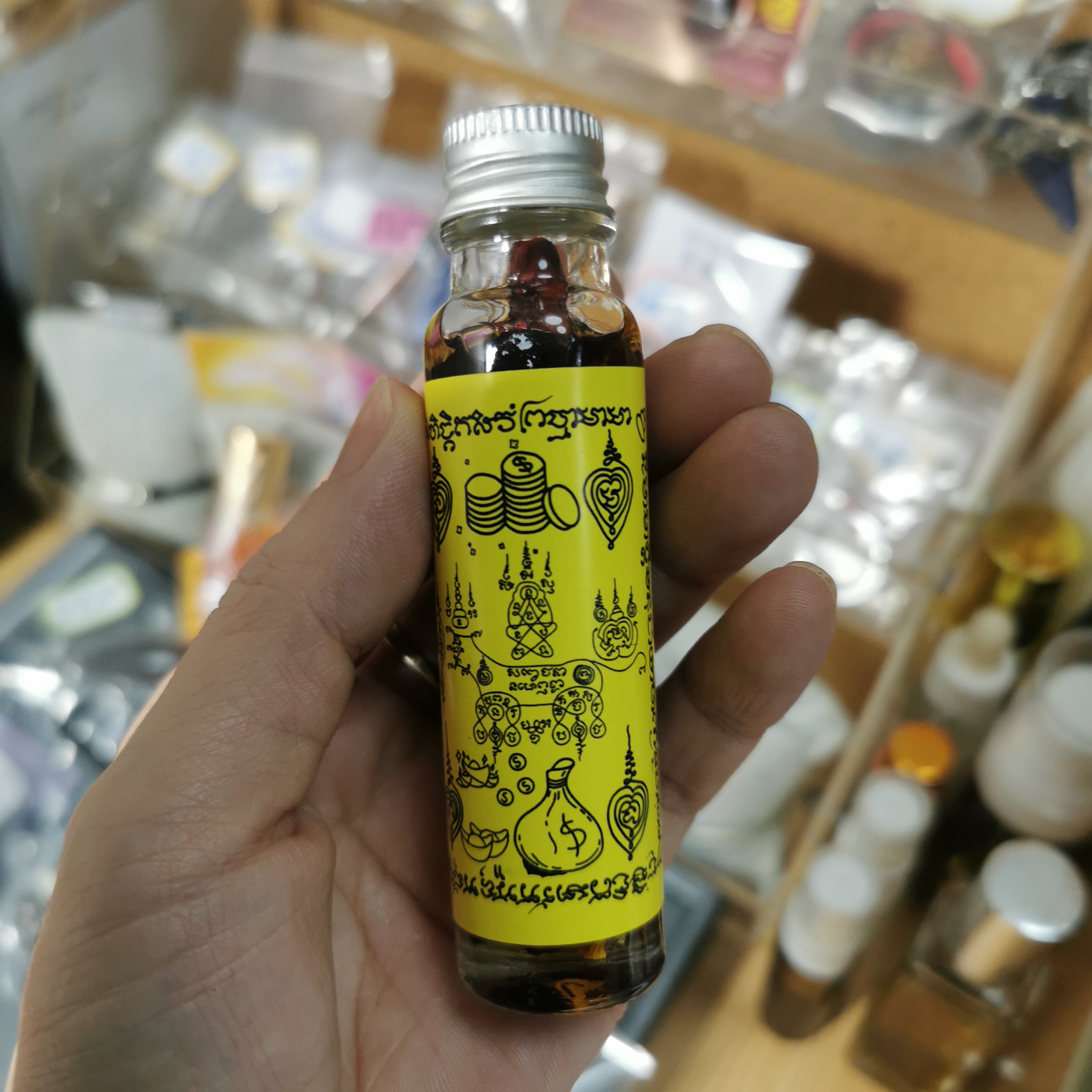 泰國著名法力大師 阿贊喬師傅 超猛的保護法油 【印拔實獨派】招財人緣油 ✨ 佛曆 : 2567年 由阿贊喬師傅親自開光加持 ✨ 材料 : 用上108種增財增運的人緣植物 金箔 及由阿贊喬師傅親自寫上符咒 功效 : 招財運、提升人緣運、加持聖物佛牌佛像、反彈驅除小人、增強個人氣場 【印拔實獨派】是阿贊喬師傅獨有的強大符印,這符印簡稱【天狗咬合】,符印就是狗形態法印,招財、人緣、反彈、保護主人。 ✨ 【天狗咬合】有著強大招財和增強人緣的功效,在一般時間使用,能招財富增加事業運、銷售的朋友、塗上能增強人緣運。這油塗在佛牌或佛像上,還可以用作加持和增強佛牌和佛像的力量,只需要將油塗上佛牌或佛像便可,不須唸經文,非常實用。 而最特別的地方是反擊小人,任何存心傷害你、或是是非小人,可以在白紙上畫上一個狗的形狀,再將對方名字和出生年月日寫在狗的圖案中間,將油沾滿紙張上然後再燒丟,便可以令到對方知難而退,如對方靈頑不靈,這法印就會令對方運氣越來越差,是非常強大的法油。 ✨ 使用方法1: 一般增財運、一人緣運使用方法: 將油搽在臉上或手上,作用是增強人緣運和異性緣運,招來貴人扶持 使用方法2: 可以將油塗在佛牌和佛像上,作用是增強佛牌和佛像的力量,將油塗上後便會增強聖物的能量和(卜石)加持的功效,無須唸經文 使用方法3: 如有人想傷害你或對你不好,可以在一張白紙上,畫上一隻狗的形狀,然後將對方的名字和出生年月日寫在狗圖案上,把油倒出並將這張紙浸在油裏直至完全浸透,然後拿出來在安全的地方和環境下把這張紙燒丟,作用是令到對方不再傷害你,會使到對方運氣非常不好,達到驅除小人和反彈傷害的功效