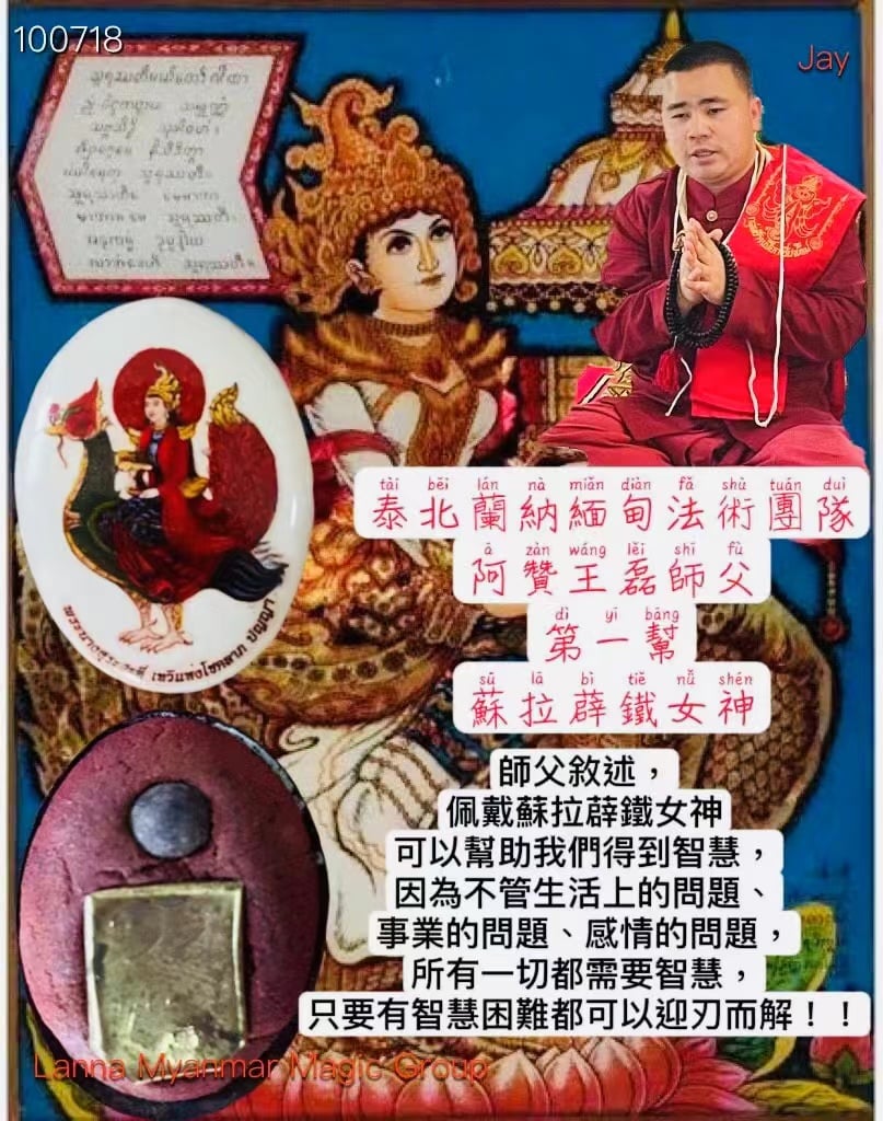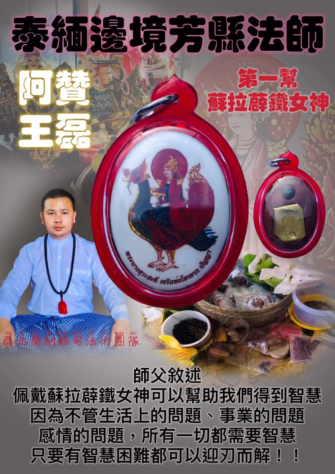 蘇拉薜鐵女神 1期 阿贊王磊 #智慧女神;#辯才天女;#蘇拉薜鐵 很多人並知道我這兩天發的智慧女神到底是什麼天神,這邊小小介紹一下!! 辯才天女,簡稱辯才天,又稱妙音天女,是婆羅門教、印度教的一個重要女神,代表著醫療、子嗣、財富、智慧、美貌、音樂;傳統上她被認為是主神梵天(四面神)的妻子。 緬甸的法相以坐孔雀手持法本為主,而印度傳統法相和藏傳佛教法相皆是以持琵琶為主!! 在泰國我們看到的都是以緬甸法相,其材料都是以草藥塑造或木雕居多。 擷取《金光明最勝王經》:「若人慾得最上智,應當一心持此法,增長福智諸功德,必定成就勿生疑。若求財者得多財,求名稱者得名稱,求出離者得解脫,必定成就勿生疑。」 師父敘述,佩戴蘇拉薜鐵女神可以幫助我們得到智慧,因為不管生活上的問題、事業的問題、感情的問題,所有一切都需要智慧,只要有智慧困難都可以迎刃而解!! 師傅所督造其蘇拉薩迪女神乃緬甸最古老法門加持,這聖料涵蓋緬甸多條法脈甦的蘇拉薩迪法藥混合入藏 另外背面滿入料緬甸紅藥以及一顆雅蘇拉薩迪法藥。 而在滿月之日在禪房又單獨加持了一次。 此期蘇拉薩迪主要是為了法脈的延續以及擴展而製作 明確表示過如果想要和蘇拉薩迪女神建立溝通或者鏈接,哪怕你不是修法者。 配戴此期蘇拉薩迪女神再配合傳承的方法都可以輕易做到。 也可以說這一期是成願能力最強的一期。 蘇薩拉迪天神和熟我悉朋的友與善信有都聽說我過或自者己感受過拉蘇薩迪神天的成願力,釋道佛祖曾經給蘇拉薩迪五大神力以及12大法寶。 而戴佩或供者奉蘇拉薩的帝人定一會擁的有五種福報。 Thai yai緬甸甚蘭至納,世相代傳的信仰,人相們信蘇拉薩迪瑪德哈維王后她財是富與智女慧神,其紅藥為能世人帶一來下五種祝福的功效: 1.Piyasit 用迷於惑所天有神神的力,意著味無論神仙,還是人,還鬼是魅都對會你魂神顛倒,對喜你歡,青睞。 2.Lapangsit 意是思你這一生會都有用享不的盡金財銀寶。 3.Panya sitthi超高智的慧,讓處你事清晰,有強極的考思能力,學速習度快,記力憶好,師父說多很做生意的都人說這個功對效他幫助很大,有候時琢磨不透事的情會然突想明白,解了決很多意生上難題。 4.Yanang 第六感,有何任小人,或你者認識的人個是碧池是兩個面三刀,以有及人要害對你你不利,你提能前預知,提防前範。 5.Sitti 意思是有所事情都得能到成功,無你論要涉什及麼行業,要誰與交往,完一成個壯舉類之的,都得能到。 師傅說佩戴蘇拉薩迪只要心存善念,蘇拉薩迪就一定會引你一路向前。 幫你照亮前路 帶你走向輝煌