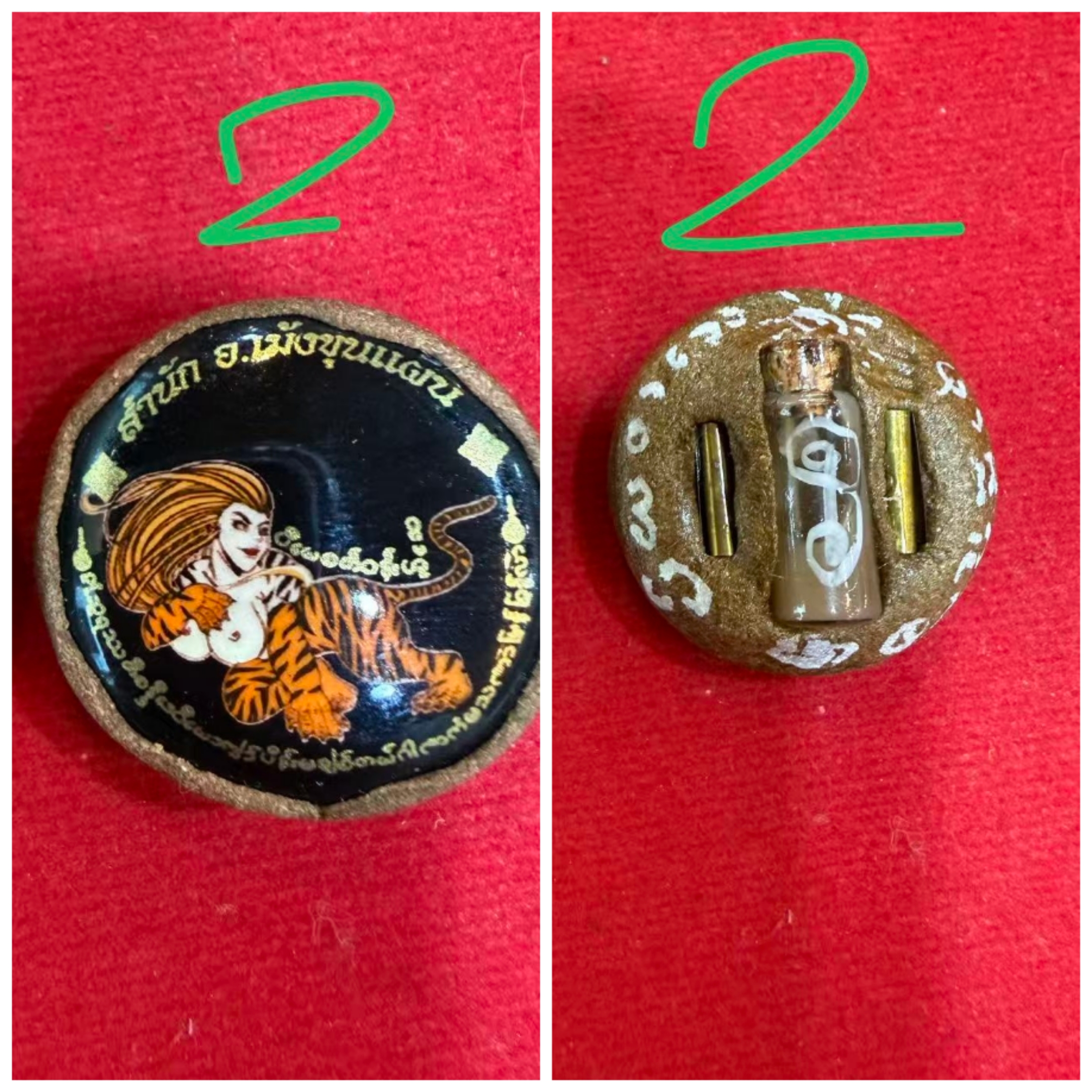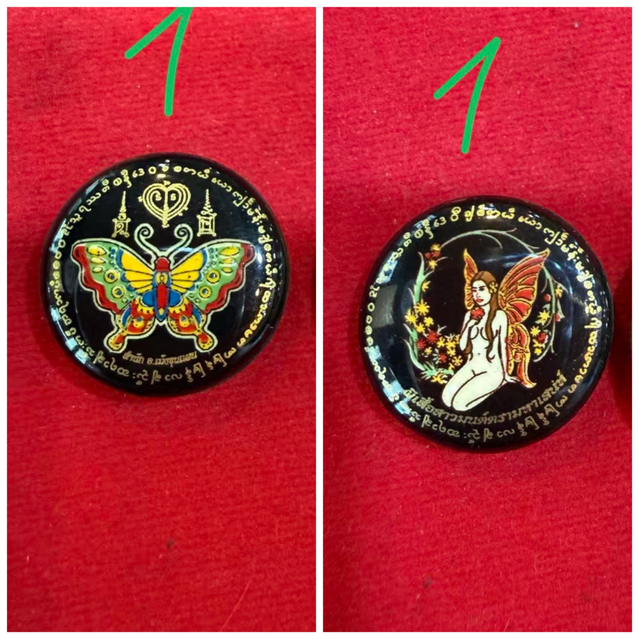 蝴蝶衣霸 阿贊明工作室 阿贊奔2565年 此蝴蝶依霸為成名作之一 前為仙子代表人緣異性的桃花能力 , 後為招財蜘蛛依霸寓鎖財 , 守財並抓補客人 , 鎖心 , 等能力 . 佩戴供奉可提升自身魅力 , 並且適合夜場工作 , 交際四方 , 招攬客人財運 . 並極其適合做生意的銷售以及微商佩戴 , 招攬客源 , 增強人緣 , 強力吸財非常厲害 , 可以完成供奉者心願以及擋開危險 . 蛇煙: 食人虎女:防小人、懲罰小人回饋非常好…,此法門厲害之處是當有人想立壞心腸加害人,如對方有佩帶捨十面浸靚在身上,或有刺符於身上。 能作出反彈的作用,令對方自作自受,而且會反擊對方,使對方運氣倒霉,生病,得到報應。 此種泰緬老虎法術相當厲害,以窮兇極惡見稱,凶狠程度極高,但作為保護自身的法術牌,舍瀛此法術可稱得上十分厲害。 捨贏的前身狀態,法相為食人虎法相,嘴中咬住一位女性。 綜合防禦和進攻雙重寓意,吃掉小人黴運,並且把良好的人緣財運返還給佩戴護身者。 食其糟粕,返還精華。