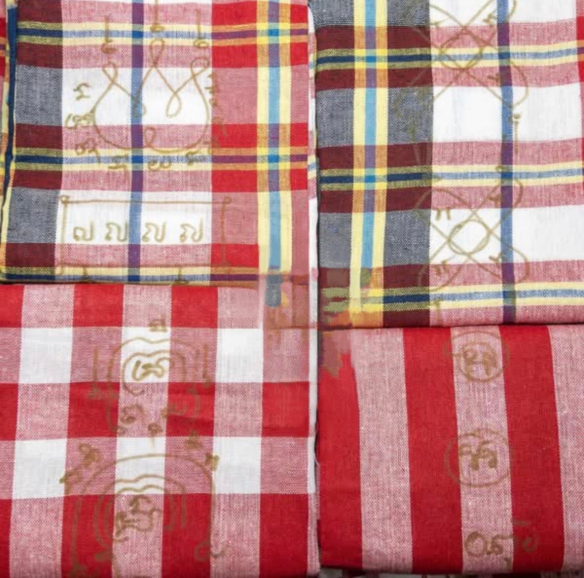 阿贊兌阿贊堆 祖師的庇佑 1)帕考符印. 2)印帕庫宰瑪祿符印 ✅特殊聖物法器 可供奉 可配戴 可放枕下 ㊙️可選顏色(藍/紅) 很多照片上常看到 有些師傅的肩上披有一塊布 尤其東北部或泰北較常見 有些是素色 有些是用紗籠布製作 有些有花樣或寫符 或甚至直接用祖師傳下的符布 其實這塊布並不是單純裝飾這麼簡單 對東北的法師而言 屬於不可或缺的法器之一 🌟帕考 通常會是法師阿贊使用 泰國人相信這是古巴阿贊、歷代祖師的加持 在任何大大小小的儀式乃至於日常生活 甚至是睡覺 帕考布幾乎不會離身 施法、加持聖物、修行時會得到祖師爺的庇佑跟保護 從而有更厲害的法力、加持出的聖物靈驗 修行、施法亦不受邪祟干擾 並且擋開惡意法術、降頭攻擊 我自己有兩塊阿贊堆自用多年的帕考布 阿贊說 其中一塊甚至是阿贊睡覺的時候放在枕頭下做防禦的法器 (東北部 尤其阿贊堆所在的泰柬邊境 降頭邪術橫行 而睡覺又是最容易中招的時候) 但師傅自用的帕考並不輕易讓弟子外的客人請供 所以小弟就又開始對師傅吵鬧啦😚 這次是阿贊首次答應製作帕考布給信徒恭請 大部分客人跟牌商都喜歡招財啦 人緣情慾方面的法物 但我覺得除此之外 代表歷代祖師傳承的聖物是必要的收藏 譬如看似不起眼的帕考布或麥枯祖師權杖等等 各位可能不知道 自己配戴的聖物有力量、會靈驗 有一部分是來自於法脈祖師降臨給的力量 而代表祖師傳承的聖物乃是最直接的連結 這批帕考是用紗籠布製作的 紗籠布是一種在東北部常見的日常用品 用途非常多 日常保暖到禮敬祖師、法事、坎庫都有使用 材質可以有蠶絲、植物纖維、聚酯纖維混紡等等 有些門派的法術戒會禁止下身用的紗籠披在頭頂視為不敬影響法力 阿贊堆老師在祭拜神佛及古巴阿贊後 拿出法術小本本 挑選數個力量巨大 有吉祥加持力的符印贊寫在帕考布上 一邊持咒一邊用念力心力加持 寫完都覺得師傅看起來有點累🥹 這樣的法器對有習法之人的來說算是一種增益力量 在開壇行法時有點像上一層buff (剛抵台就被一位有學法的前輩直接找我拿走一塊 隔天就告訴我 加持他自己學做的聖物時感覺比較輕鬆就能達到狀態🧐) 而對一般沒有習法的信徒而言則代表古巴阿贊祖師最貼近的祝福 ✅1.可以放在壇上供奉 如同敬拜祖師 特別適合不能擺供尊或法照的人 ✅2.可以向祖師許願 ✅3.可以披在左肩 尤其修持 念經 持咒 打坐的時候做保護 ✅4.睡覺時可以放枕頭下 擋開法術攻擊、負面磁場干擾、鬼靈侵擾 這是老師傳承意義的聖物 擁有師傅給的帕考雖然不代表是法脈弟子 但是有那種「你是我這派罩的」的意思 師傅簽什麼符印都是看緣分 不保證會得到什麼符印 這是數量有限
