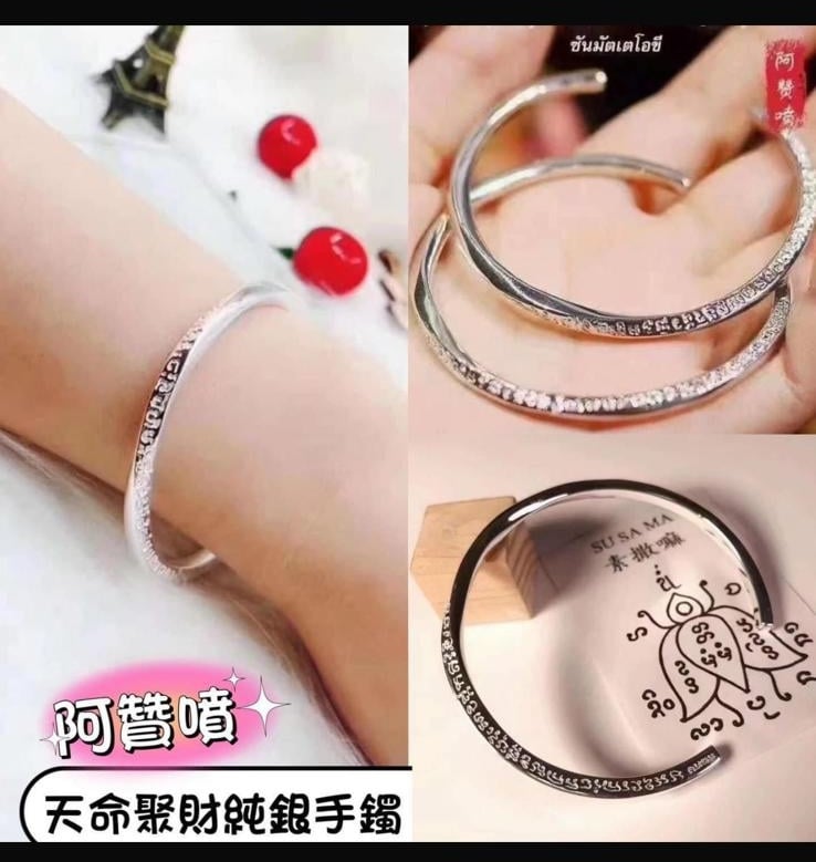 阿贊噴 天命聚財純銀手鐲 人緣,財運,生意🈶所改善,甚至更好 佩戴後人緣愛情桃花財運各方面運氣🈵🈵 讓自己好運🍀招異性緣 大小可以自己調節 阿贊噴🔥「天命純銀聚財經文手鐲」💥💰💥簡單大氣款純銀手鐲,✨✨沒有禁忌,招財吸財固財,感情和合鎖心,☄️☄️阿贊噴招財挽愛手鐲網紅主播們的最愛💪🙏 阿贊噴大師誦經加持99遍功效非常強大,功效非常全面讓你魅力十足,🌹光芒四射!🤙🏼🤙🏼開口手鐲, 尺寸可自行調節。 可以增強自身人緣、#魅力、#異性緣:使佩戴招攬異性緣愛情運、#人緣、#貴人運、#財運、吸引物件、#吸引身邊人家人朋友上司客戶,改善人際關係,擴大朋友圈 加速增強財運,感情 ,生意,事業,走到哪都有你,所有人都喜歡你,都關註你不管是物件,朋友,客戶,家人,上司,同事等等都喜歡你 ,談業務,改變一身磁場,令心儀的男神女神,客戶,朋友,上司, 同事等等身邊人都喜歡你。 情財富生活必備聖物,異性緣同性緣,鎖心,挽回感情,魅力,桃花,人緣,財富,擋災,辟邪,擋險,正姻緣,貴人運、吸引物件、魅惑接觸你的一切人物、自主成願,單身者改善愛情運必備 ,情侶夫妻讓感情重溫必備,人人必備生物 男女皆可佩戴! 吸引異性對你的身體和魅力的欲望,讓異性想和你啪啪啪。 ⚠️佩戴方便,洗澡睡覺不用取 啪啪啪時也能佩戴 無任何一切禁忌,誠心就好