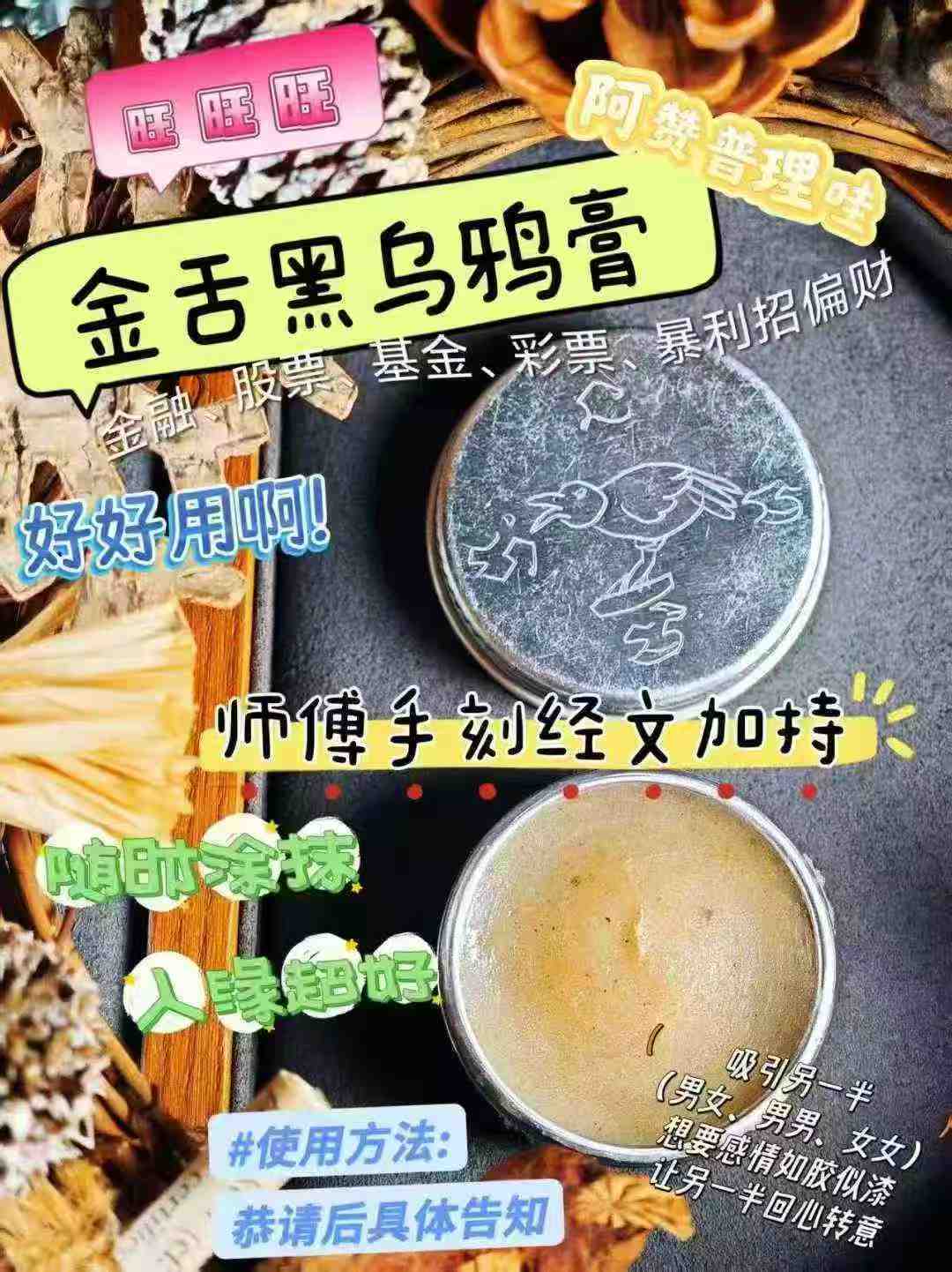 阿贊普理 哇金舌黑烏鴉膏 陰法開光!完全無陰料 阿贊普理金舌黑烏鴉魅惑膏!必請的靈膏天花板,最強全能無敵許願成願,(無陰料)什麼願望都可以,不要害人的就行,反饋無敵百分百,幫助無數人體會到成願神蹟,新加坡馬來香港臺灣神蹟不斷!老師的學生幾乎人手一瓶! 許完以後抹在身上臉上都可以(一定要抹才有用,只是佩戴和放着供奉沒有用)有特殊使用方法恭請後告知❗❗❗ 成願無敵而且無數反饋,老師的善信請過的都有讚評! 阿贊普理在馬來西亞和中國香港都有名氣,而師父的烏鴉魅惑膏就是讓他風靡馬來中國香港的超頂聖物,每個人都想擁有,師父一年只做一次,因爲需要特定的材料和嚴格的轉化時間,烏鴉魅惑膏本身塗抹就可以給你帶來無盡的魅力,幫主人找人找錢她的這個味道別人聞久了會被迷惑,特別適合夜場或者銷售或者開店找客人的做生意的上班族等得到貴人賞識提攜的以及挽回感情 鞏固感情增加人緣桃花增加別人對你的喜歡迷戀的使用。 總之一句話:人緣膏天花板級!絕不是誇大其詞請了不後悔,必須人手一瓶去感受!成願槓槓的!而且通心力還非常大!
