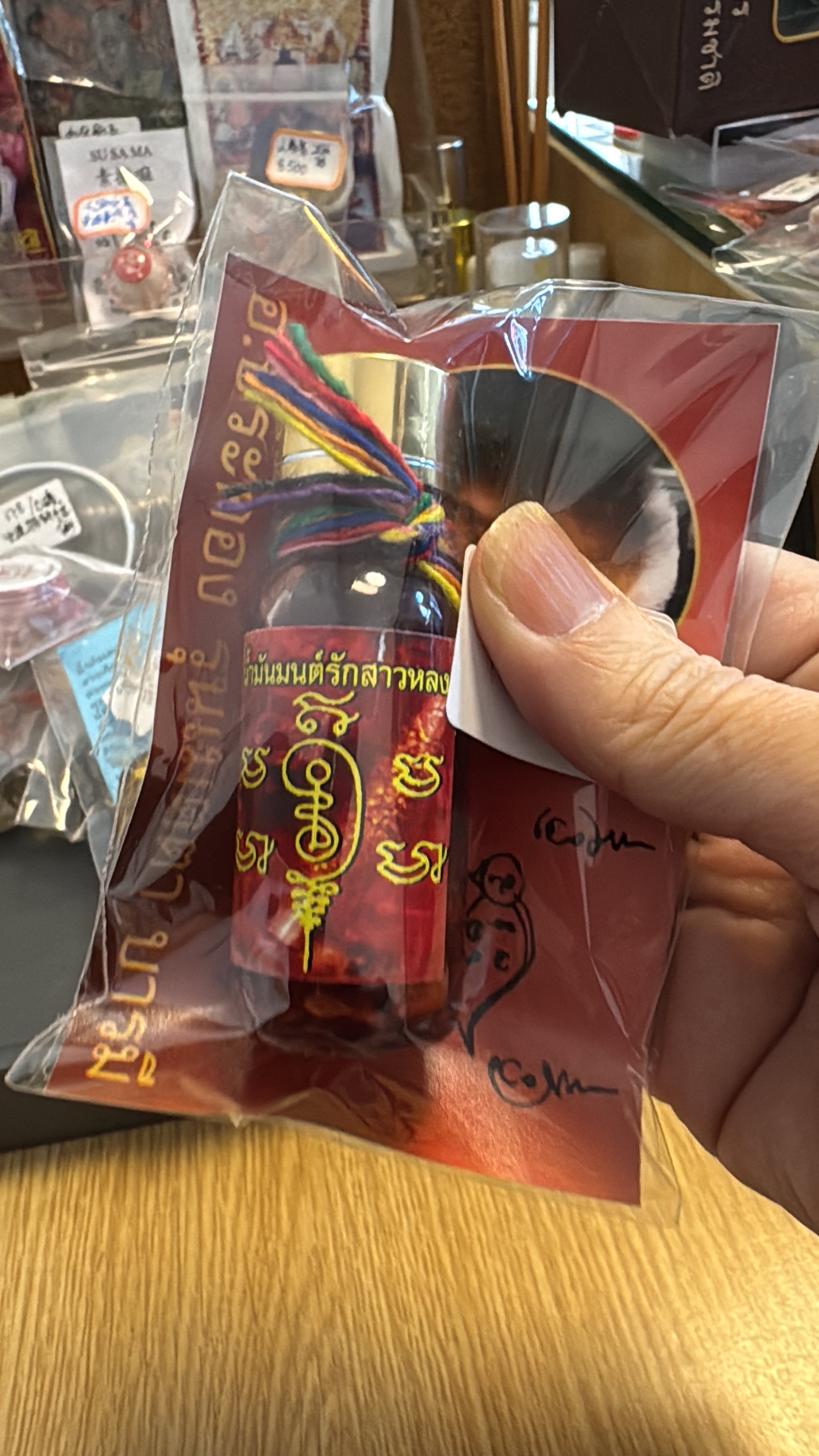 阿贊白礦 佛曆2566年 大麗花紅雞愛情油 這是阿贊帕空(Ajarn Prakong)的強效愛情油。它是一種極其有效的吸引愛情、迷戀和魅力的精油。任何人只要隨身攜帶,塗抹於眉毛、額頭或髮梢,同時念誦“Na Metta Jit Na Metta Jit Na Metta Jit”,並祈求阿贊帕空的加持,便會立刻被精油的力量所吸引。即使只是一瞥,也能讓人著迷,產生一種催眠般的魔法。如果你碰觸到使用過此精油的人,他們會立刻被你吸引,為你傾倒,為你神魂顛倒。這款愛情油能讓你對男女都充滿吸引力,帶來人氣,吸引愛情,讓你魅力難擋。它尤其擅長贏得好感,獲得上級和老闆的喜愛,並擄獲所有性別的人的心。 女人會愛上女人,男人會愛上男人。它能帶來愛情上的成功和家庭的和諧,對事業、運氣和各方面的吸引力都非常有益。