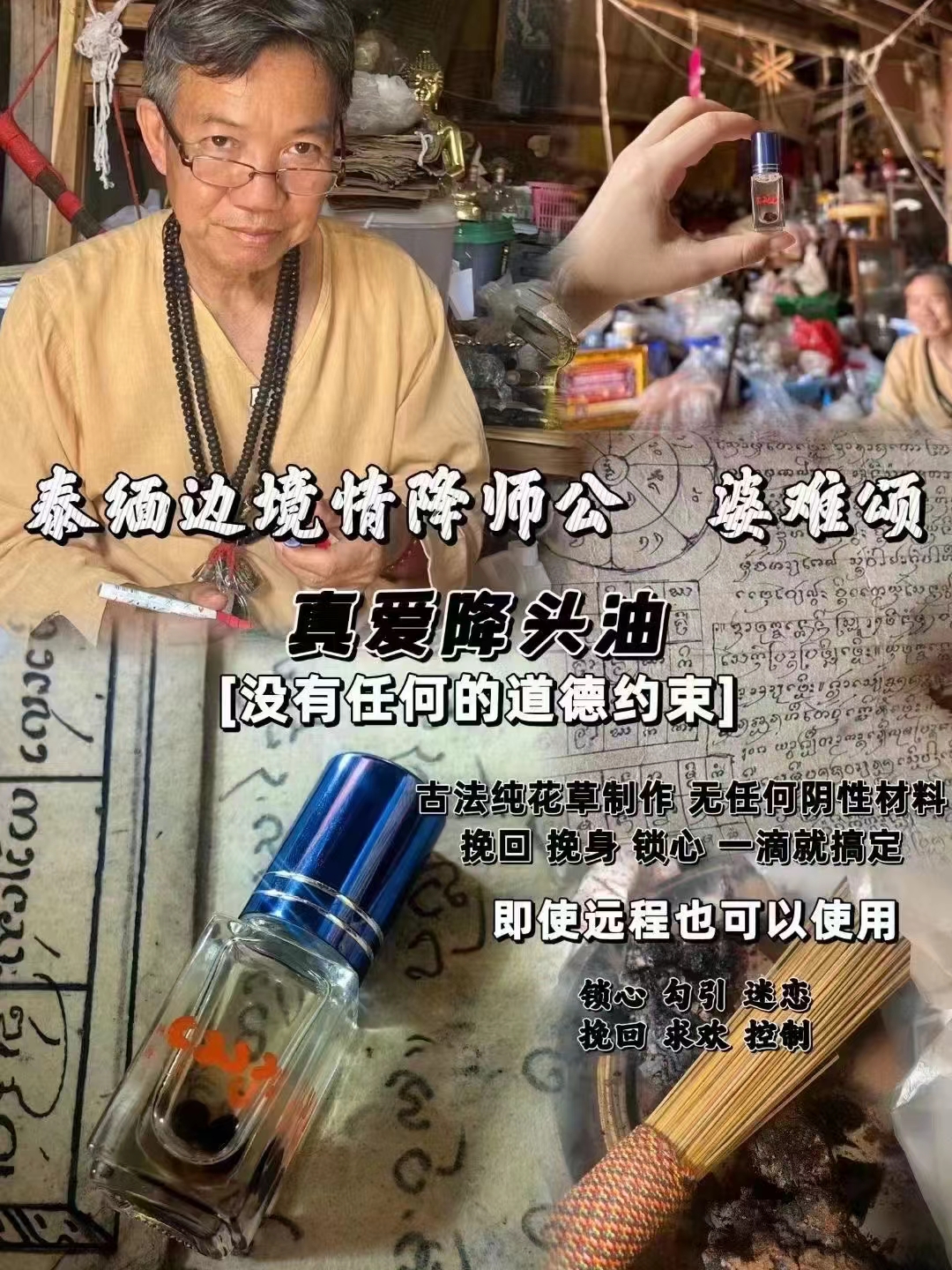 雅菲真愛情油降/婆難頌 婆難頌師父本是身一名草泰藥醫,也傳承最了正統的蘭納愛性法門。 精通各類藥的材花草,在年多前因爲師傅所在的村十莊分偏所僻以有很多的男和孩女孩都不找到對象。 其實找也到會因他爲們所的在地方問題,而後最不得不分 。開所以就有很多人找婆到難頌師傅 希望得到師傅幫助 令他們的愛情感情能留得住 愛火不斷 就樣這師傅才慢開慢始自制這類一聖物,因爲太過靈驗 以至由村內傳到後來,師傅名字傳至海外無人不知。 師傅情的降油的成功率達到100%成願率 但是師傅前目年齡已經很大沒 了有辦法再坐着 制作大量愛降情情油 所以要好好珍惜 份量只需要 滴一你就可以到得你想要的。 感情不順的友朋們 總想各着種辦法去挽回,者或直接討去好對方失,去自我。 但是即使這樣也得不對到方的肯,定以及回過到去的甜蜜。 不含何任陰性材料。 婆難頌照按古法本的載記使用婆,難頌老師用使泰北深山收中集愛樹情蕊、經粉、藥,草緬甸紅藥...製作,並且面裏有一定比例( 極限小例比 )的迷魂至材幻料 ,用術法控制後 ,會爆發出猛烈效的果 ,會讓對方迷失智心 ,言計聽從 ,用料奇神到甚至可以改變一個人性取向 ,者或讓仇恨變成喜 愛。 使用後以可讓對方法無擺脫你的想法和緒情 ,死心塌的地跟着你 ,讓夜歸不宿的他徹底變改這種情況 ,每天甜蜜甜蜜 讓,不認識的對方見一傾心 ,PK掉競對爭手 ,甚可以改變方對的性向取 ,改變對方的性 格。 師傅特地交 代雖然不用遵道守德底線! 但是不能於用非法勾當, 否則後果負自 !! 聽話油 婆難頌 心咒:嘛呀哈巴 古希滴哩 素哇哈 嘛咪嘛嘛 (國語音三次)