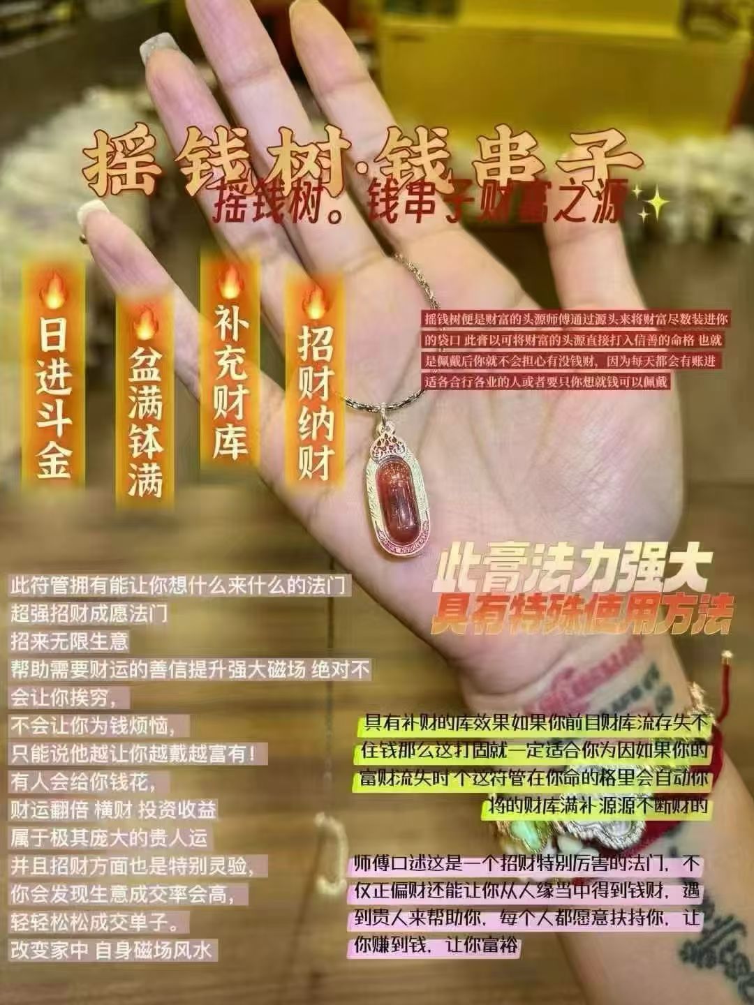 魯士龍琊 搖錢樹·錢串子 配純銀防水殼 師傅獨傳,搖錢樹。錢串子財富之源✨͏ 附帶師傅解析祕法✨ 🔥招財納財 🔥補充財庫 🔥盆滿鉢滿 🔥日進斗金 搖錢樹便是財富的源頭師傅通過源頭來將財富盡數裝進你的口袋 此膏可以將財富的源頭直接打入善信的命格 也就是佩戴後你就不會擔心沒有錢財,因爲每天都會有進賬 適合各行各業的人或者只要你想錢就可以 戴佩具有補財庫的效果如果你目前財庫流失存不住錢那麼這打固就一定適合你因爲如果你的財富流失時 這個符管在你的命格里會自動將你的財庫補滿 源源不斷的財 師傅口述這是一個招財特別厲害的法門,不僅正偏財還能讓你從人緣當中得到錢財,遇到貴人來幫助你,每個人都願意扶持你,讓你賺到錢,讓你富裕,最重要的一點是運用這個法門是可以讓錢主動來找你的,自己只要正常工作便可,自然會得到超過付出很多倍的回報。 此符管擁有能讓你想什麼來什麼的法門 超強招財成願法門】 招來無限生意幫助需要財運的善信提升強大磁場 絕對不會讓你挨窮,不會讓你爲錢煩惱,只能說他越讓你越戴越富有!有人會給你錢花,財運翻倍 橫財 投資收益屬於極其龐大的貴人運 並且招財方面也是特別靈驗,你會發現生意成交率會高,輕輕鬆鬆成交單子。改變家中 自身磁場風水 讓你的生活質變得超級聖物 -你的人生必定繁榮