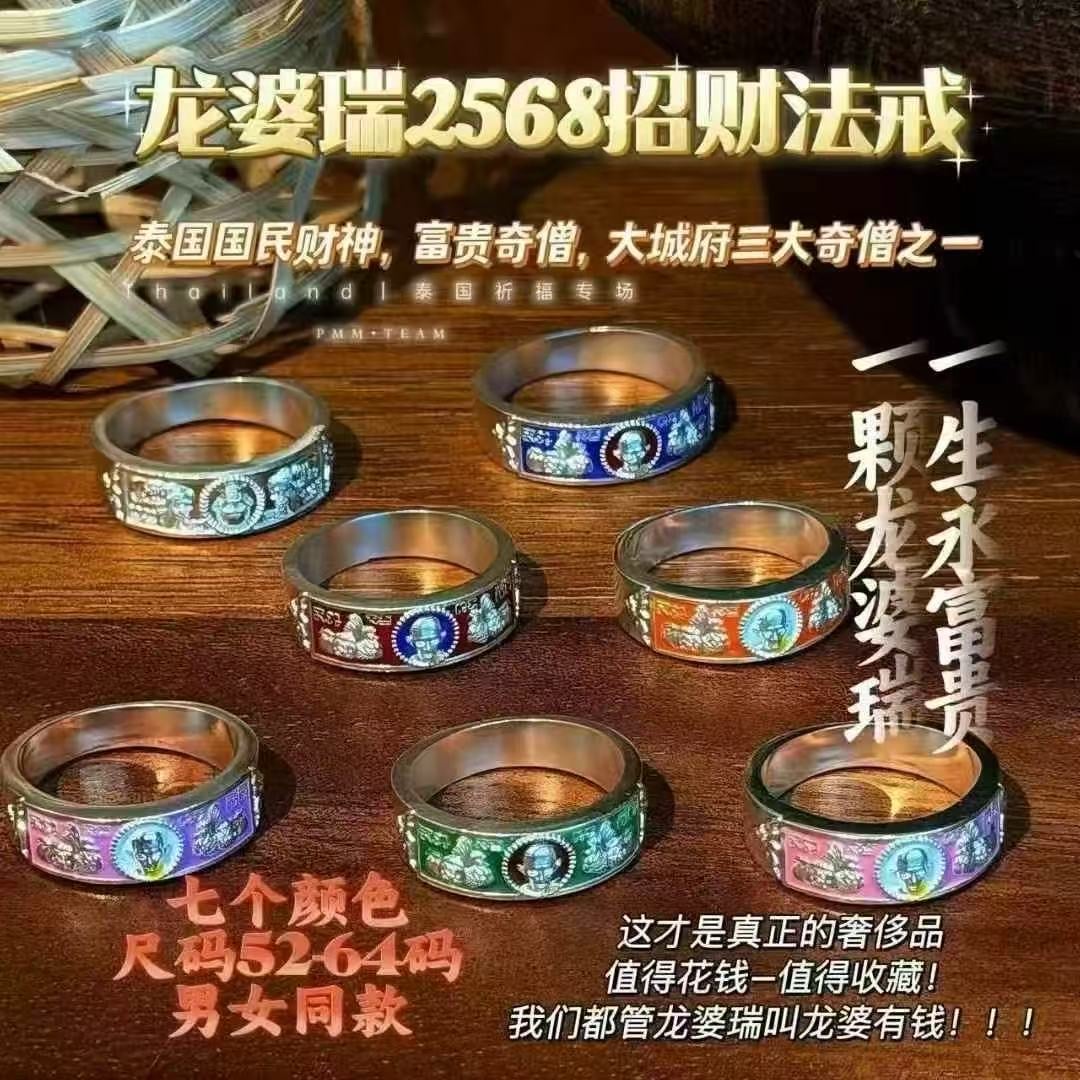 2568招財戒指 泰國國民財神、富貴奇僧、大城府三傑之一,當代19名師、龍婆瑞 招財戒指,價美,這才是真的 正奢侈品,值得花錢,值得珍藏,我們都管 龍婆瑞叫“龍婆有錢”,建議比較有消費能力 的都請龍婆瑞,牌正,師父修為好, 泰國的國民財神。不招財你給 還我,泰國大把得人收,出廟就翻倍 【介 紹】中間是財神爺龍婆瑞自身像+富甲天下 經文。 內里有師傅的金錢袋符文,牢 牢的套住你的手指,讓它們成為黃金抓錢 手,牢牢抓住財運機遇,吸引招財,不缺乏 掙錢的能力,富貴臨門。瑞師傅的聖 物,招財能力絕對突破你的想象空間,用多 很善心的話說就是“讓人賺錢到手軟”,旺財 正生意、也旺偏財賭運。有業務要談或者要去打牌,一定要帶上它 【功效】法戒就是 巨巨巨招財,泰國國民財神、人人富貴奇 僧,龍婆瑞,瑞這個字在泰文里意思是富有 (有錢)的意思!師父在於招財法門的 功力深厚,其實大師除了招財法門相當靈之 驗外,還有擋災保命法門,人人功效及靈 力極高!強力財運,招攬正、偏、橫財,利 投資、博彩、股票,強力助生意、財離 不手,助人緣事業,保平安擋險