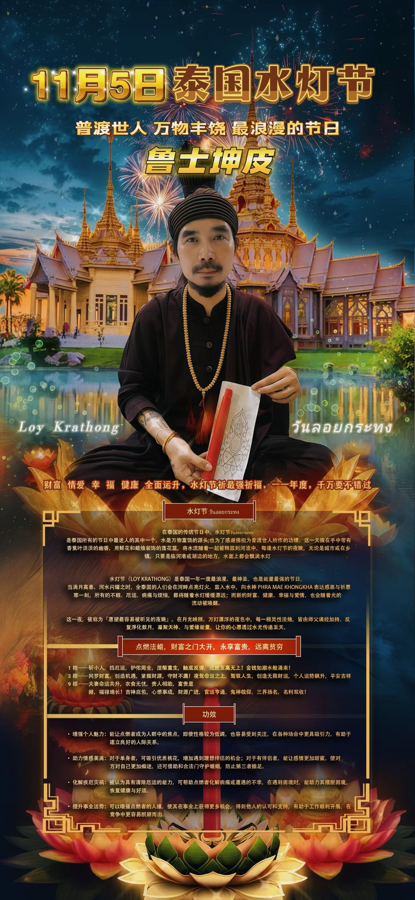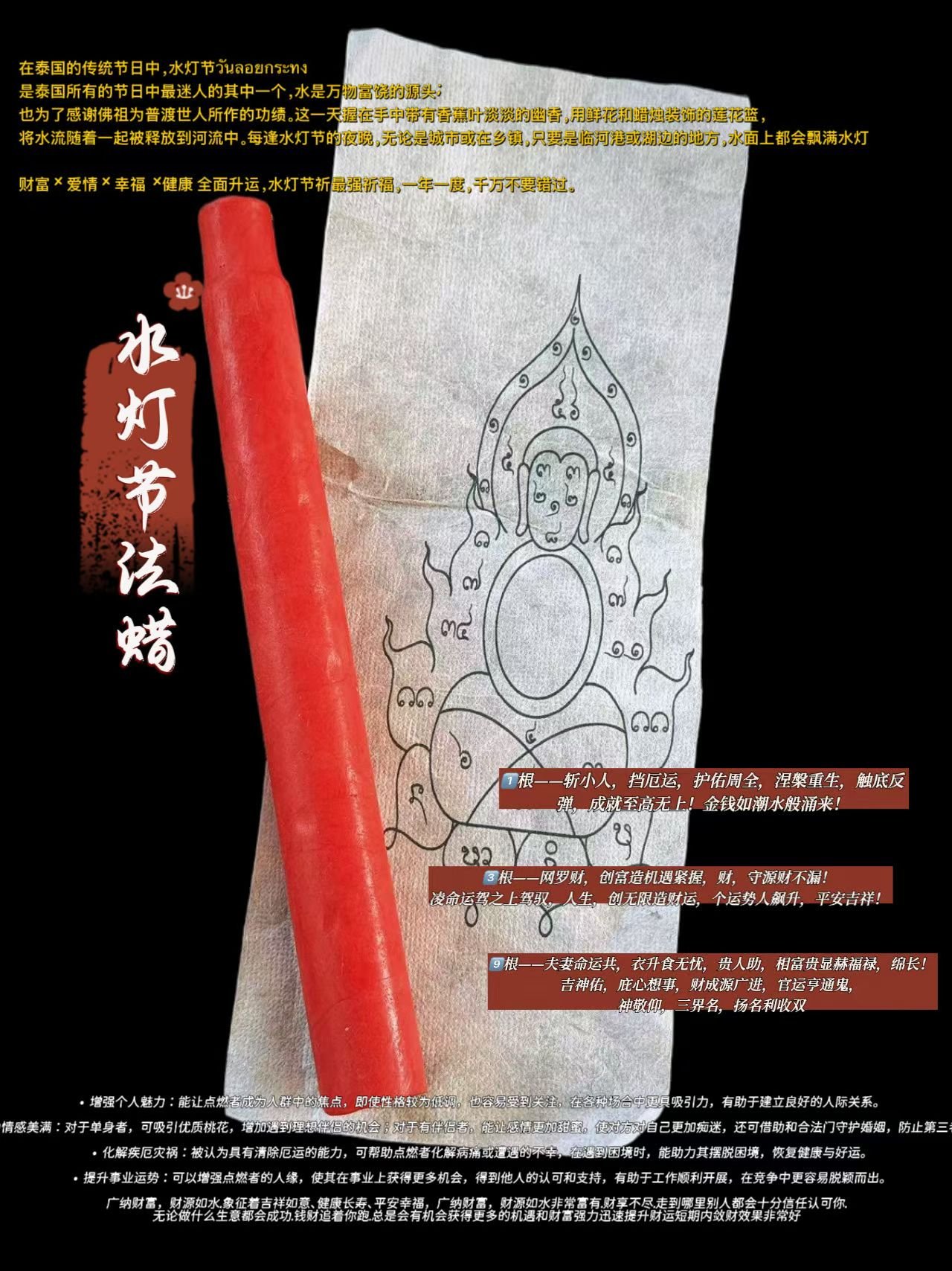 11/5號坤皮師傅 水燈節蠟燭 本期蠟燭🕯️和以往蠟燭不同, 純手工蠟燭,符布蠟燭心, 這是坤皮老師出家之前最後一次法會蠟燭!! 五號點燃,三號停止接單,魯士坤皮閉關之作‼️ 🌕水燈節(Loy Krathong)是泰一國年一度最浪漫、最神聖、也是能最量強的節日。 當月滿高懸、河閃水耀之時,泰全國的人們會河在畔點亮燈火、放水入中,向水神 Phra Mae Khongkha 表達感與恩祈求。 那一刻,有所的不順、厄運、病與痛煩都,將隨水著燈緩緩漂遠;新而的財富、健康、幸福與愛情,也會著隨光的 流動被醒喚。 🌕這一夜,稱被爲「願望最易容被聽見夜的晚」。在月光映照、萬燈漂的浮夜色,中每一根靈性法燭皆,由師誦父經加持、反覆淨化數月凝,聚天神、與緣愛能量,讓你的心願透過光水傳遞天至。 🔥點法燃蠟,富財之門大開,永享富͏ 貴,遠貧離窮。 1⃣根—斬—小人,擋厄運,佑護周全,涅槃重生觸,底反,彈成就至高無!上金錢潮如水般來涌! 3️⃣根——網羅財,富創造機遇緊,握財,源守財不漏!凌命駕運之上駕,馭人生,創無造限財運,個運人勢飆升,平安吉祥! 9️⃣根——夫妻命運共,升衣食無憂,貴人助相,富貴顯 赫福,祿綿長!吉神佑庇,心想事,成財源廣進,官運亨通鬼,神敬仰,三界名揚,名利收雙! • 增強個人魅力:能讓點燃者成爲人羣中的焦點,即使性格較爲低調,也容易受到關注,在各種場合中更具吸引力,有助於建立良好的人際關係。 • 助力情感美滿:對於單身者,可吸引優質桃花,增加遇到理想伴侶的機會;對於有伴侶者,能讓感情更加甜蜜,使對方對自己更加癡迷,還可借助和合法門守護婚姻,防止第三者插足。 • 化解疾厄災禍:被認爲具有清除厄運的能力,可幫助點燃者化解病痛或遭遇的不幸,在遇到困境時,能助力其擺脫困境,恢復健康與好運。 • 提升事業運勢:可以增強點燃者的人緣,使其在事業上獲得更多機會,得到他人的認可和支持,有助於工作順利開展,在競爭中更容易脫穎而出。