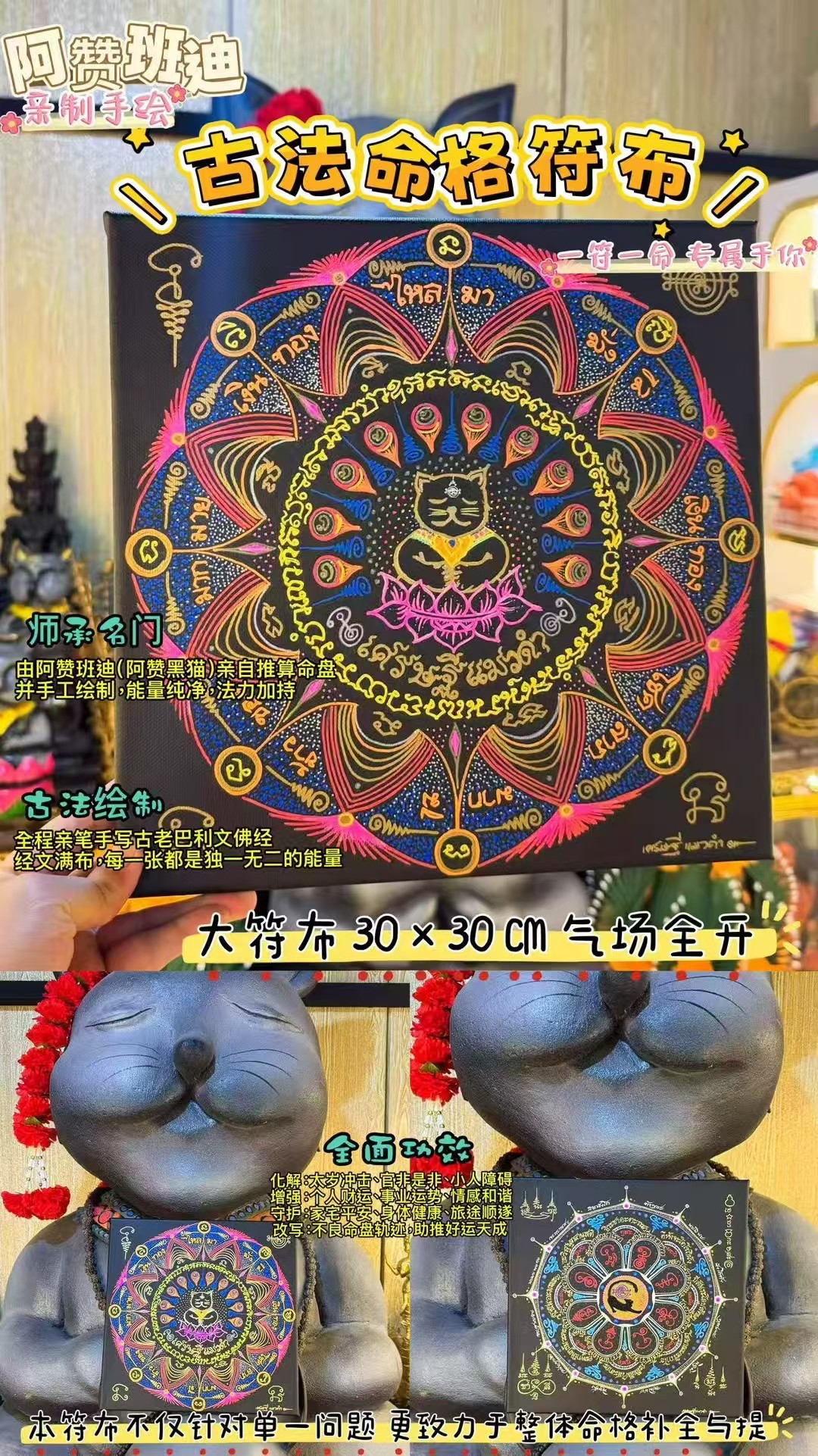 【獨家訂製】古法命格符布 · 阿贊班迪(阿贊黑貓)親制**手繪